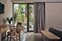 The Junior Suite Patio blends modern elegance with a touch of nature, creating a welcoming space for rest and togetherness. Ideal for small families or couples, it offers comfortable space to relax. Step onto the patio to enjoy fresh air, verdant views, and a calm atmosphere that enhances your stay.